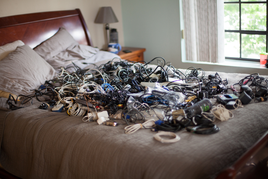 We've gotten to the electronics category in our KonMari adventure. We decided to go ahead and make a sub category of cords. Check out all of these cords! No wonder we could never find the one we were looking for.